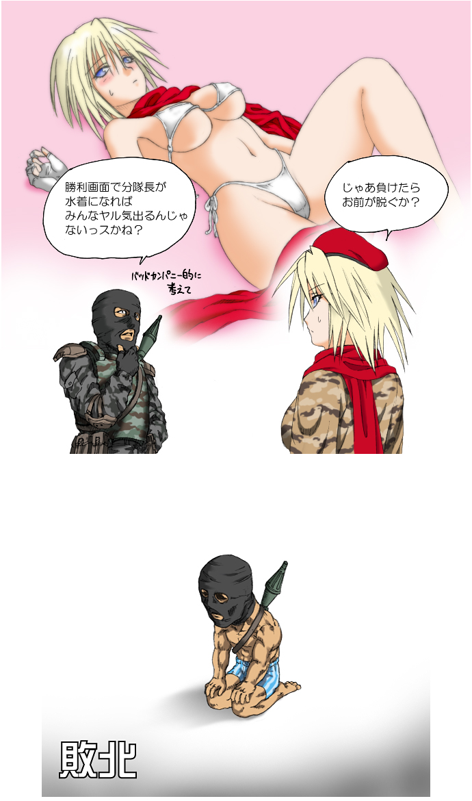 アイデア的には面白いかもしれん。BFBC2は自分を倒した相手がキルカメラで大写しになるわけだが、その際にいつもの妖怪ギリースーツじゃなくて女の子が出てくれば、少しは苛立ちもまぎれる…かもしれない。