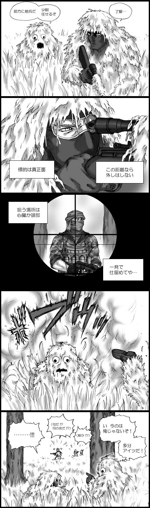なんか話がそれたが、スナイパーとは敵に場所を捕捉されたら終わりである。ひたすら静かに時をうかがい、ただ一弾をもって敵を屠る――それこそが狙撃の美学である。