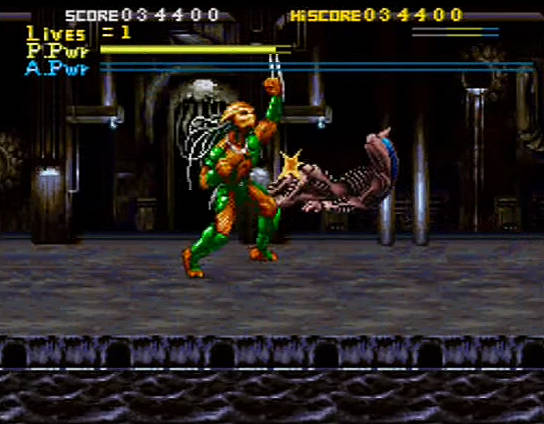 カプコン製『エイリアンvsプレデター』(1994)これはプレデターと人間のサイボーグ兵士がエイリアンと戦うベルトスクロールアクションで、そのうちプレデター勢は映画の1、2をモチーフにした「ウォリアー」と「ハンター」が登場していた。