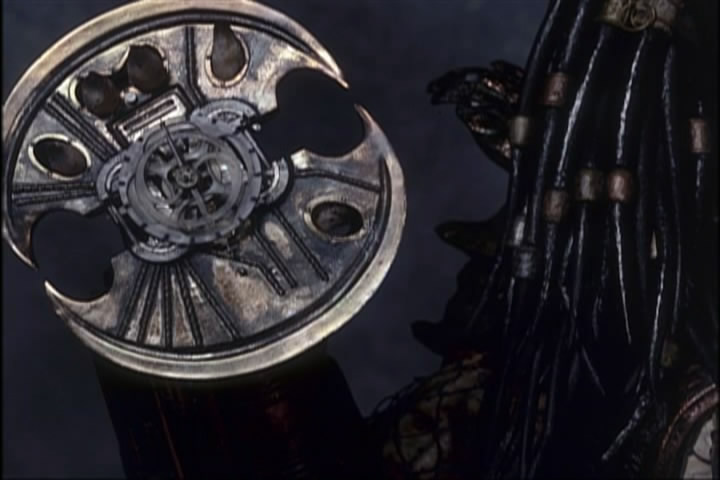 リストブレード(左)とスマートディスクなお姿を消すクローキングデバイス(光学迷彩)、爆発物を内蔵した多機能コンピュータも彼らのマストアイテムである。爆発物の威力の凄まじさは彼らのテクノロジーの高さをうかがわせるが、何かのはずみで誤作動を起こしたりはしないかと見ていて不安にならないでもない。幸い、映画版では今のところそうした悲劇は起きていない。