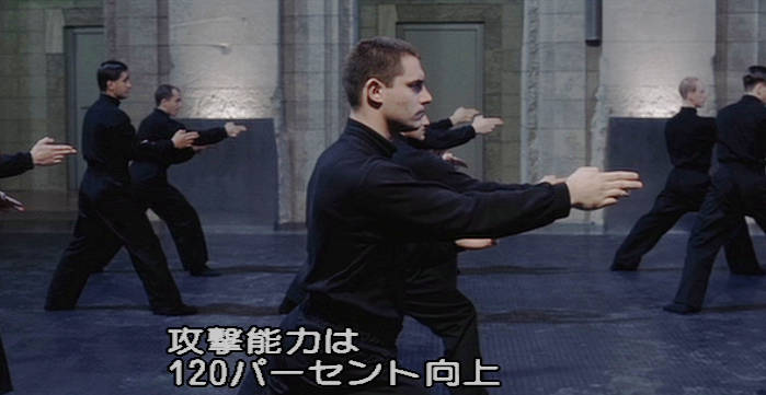 シメのポーズは初披露シーンのパロディちなみにこのアイデアを考案したのは監督・脚本のカート・ウィマーだが、妻子が留守のときに裏庭でガン=カタの練習をしたそうである。