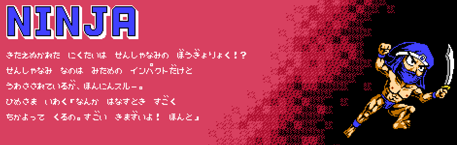 とはいえ忍者なのに忍ぶ気ゼロの出で立ちは想像すると強烈なインパクトがあったため、その後もウィザードリィの枠を超え、全裸またはそれに近い忍者はレトロゲーム由来の定番ネタとして知られるようになった。