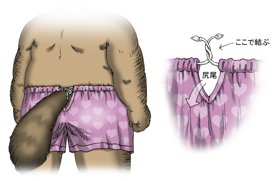 だが、疑問に思ったことはないだろうか? 狐・猫・犬などのフサフサ尻尾を穴に通すとなると毛の向きとは逆方向に穴に入れることになるので、とても面倒なのではないかと。無理に通せば毛並みもボサボサになるし、ブラッシングの手間を考えると「あーもうっ! 人間の服ってなんでこんな面倒くさいのよっ!」とキレてしまう狐さんがいないとも言い切れまい。