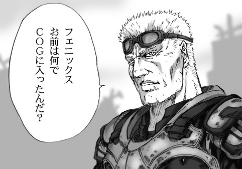 じゃあマーカスはちよじゃなくてとも役の方がいいんじゃ…となりそうだが、ボケ役であるともにはデルタ部隊一のおっちょこちょい、カーマインがしっくり来ると思う。何せ「俺の銃、弾が出ないんだけど。ホラ」と上官に銃口を向けるようなボンクラなのでトラブルメーカーにはうってつけだ(軍隊でやられると迷惑度がハネ上がるね)。GOWのドムとカーマインはほとんど絡みがないのが残念ではある。