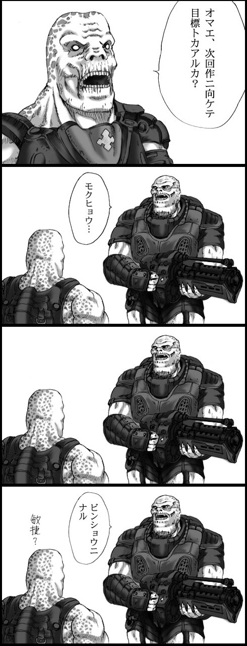 なぜ今さらあずまんがかというと「チェーンソー大好きです」の一発ネタがやりたかったから。つまり今回の更新目的はそれで完結なのだが、どうせだからこのまんま「GOW×あずまんが」で続けてみようか。