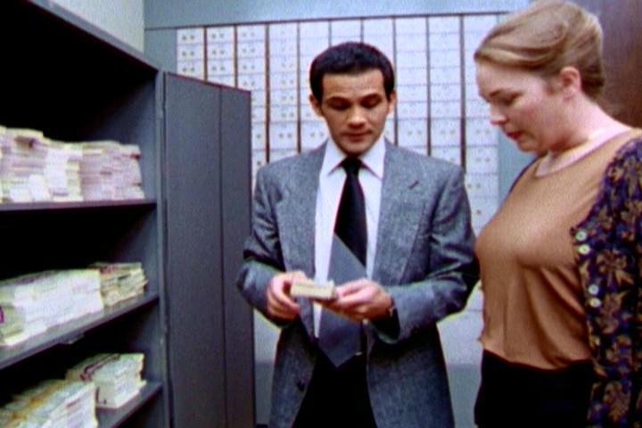 で、案の定ドンパチの最中に金を詰めたバッグが煙を噴きはじめる。染料パックのことを知らなかったとしても、副支店長が細工をしたであろうことは子供でも想像がついただろう。当然ブチ切れた強盗犯はAKを手に銀行内に取って返すが、ここで副支店長がファインプレー。うまいこと行員と客を守ることに成功する。ひょうきん者みたいな顔立ちだが、実に機転が利くタイプだ。