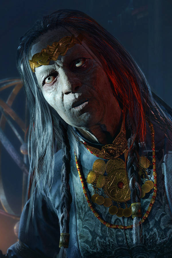 ヌアンの民は元は海賊であり、彼女もその襲撃を受けた貿易船の生き残りだった。しかしヌアンの女王マルウェン(↓)が引き取って養子にし、今では誇り高き戦士として部族をまとめているというFF5のファリスみたいな人。髪型のセットが超大変そう。