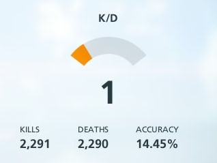 今までずっと1未満! 具体的には0.7台! シンプルなデスマッチルールだろうが、キルは二の次のオブジェクティブルールだろうが、いつだってデスがキルより多かった! 「狼は生きろ。豚は死ね」の言葉にのっとれば、管理人はいつだってキュートな子豚さんだった!