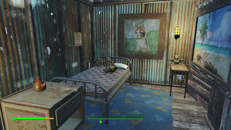 隙間風がひどそうだが、この荒れ果てた世界では雨をしのげるだけでも上等の部類に入るのは間違いない。何より壁に絵画があるだけで実に人らしい住まいになっているではないか。