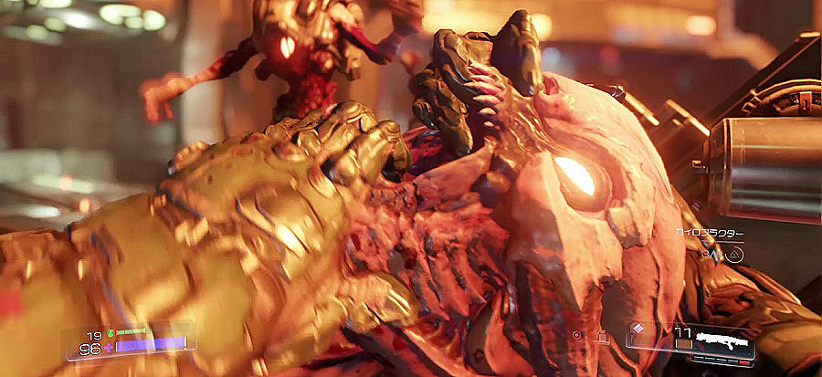 「グローリーキル」だろう。弾丸をバリバリ撃ちこんで敵が青く光ったらグローリータイム。とっ捕まえてドゥームパンチでぶん殴ったり、ドゥームストンピングで頭を踏み潰したり、その他ドゥーム脛骨ひねりやドゥーム心臓を抉り出して口に突っ込みなどを繰り出してデーモンどもを血祭りにあげていく。